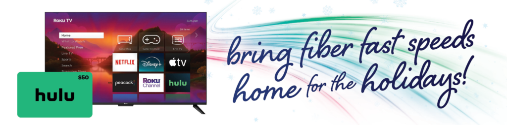 Switch to Burlington Telecom fiber internet when you’re decking the halls and get entered to win a BRAND NEW 50″ 4K Smart RokuTV PLUS a $50 Hulu gift card!* Make sure your home is ready to host everyone in the family and their devices this holiday season. With speeds up to 1 Gig, what better way to make sure your home is filled with joy? Fill out the form below to be entered or mention this giveaway at time of sign up (in person, on phone or e-mail).